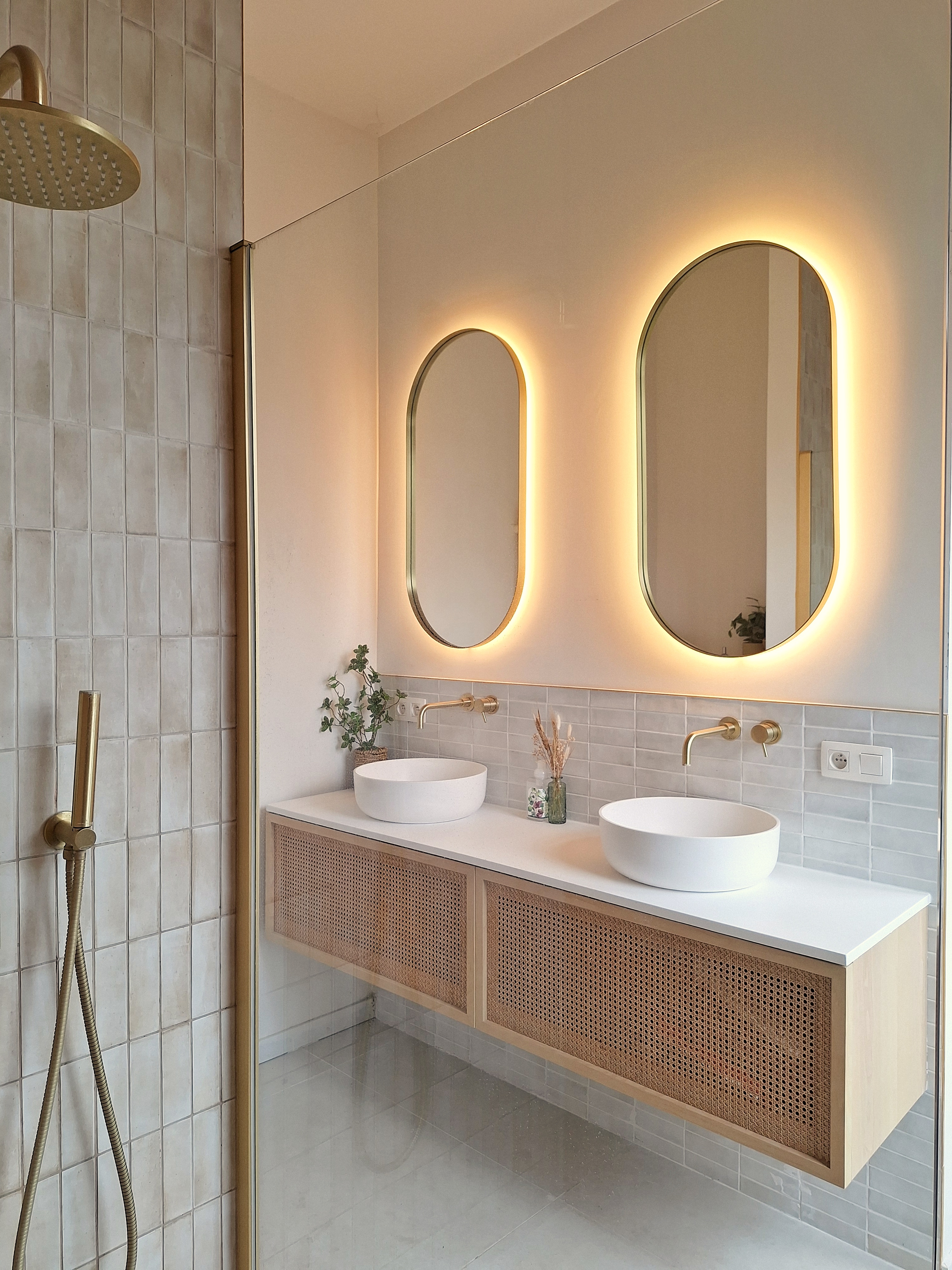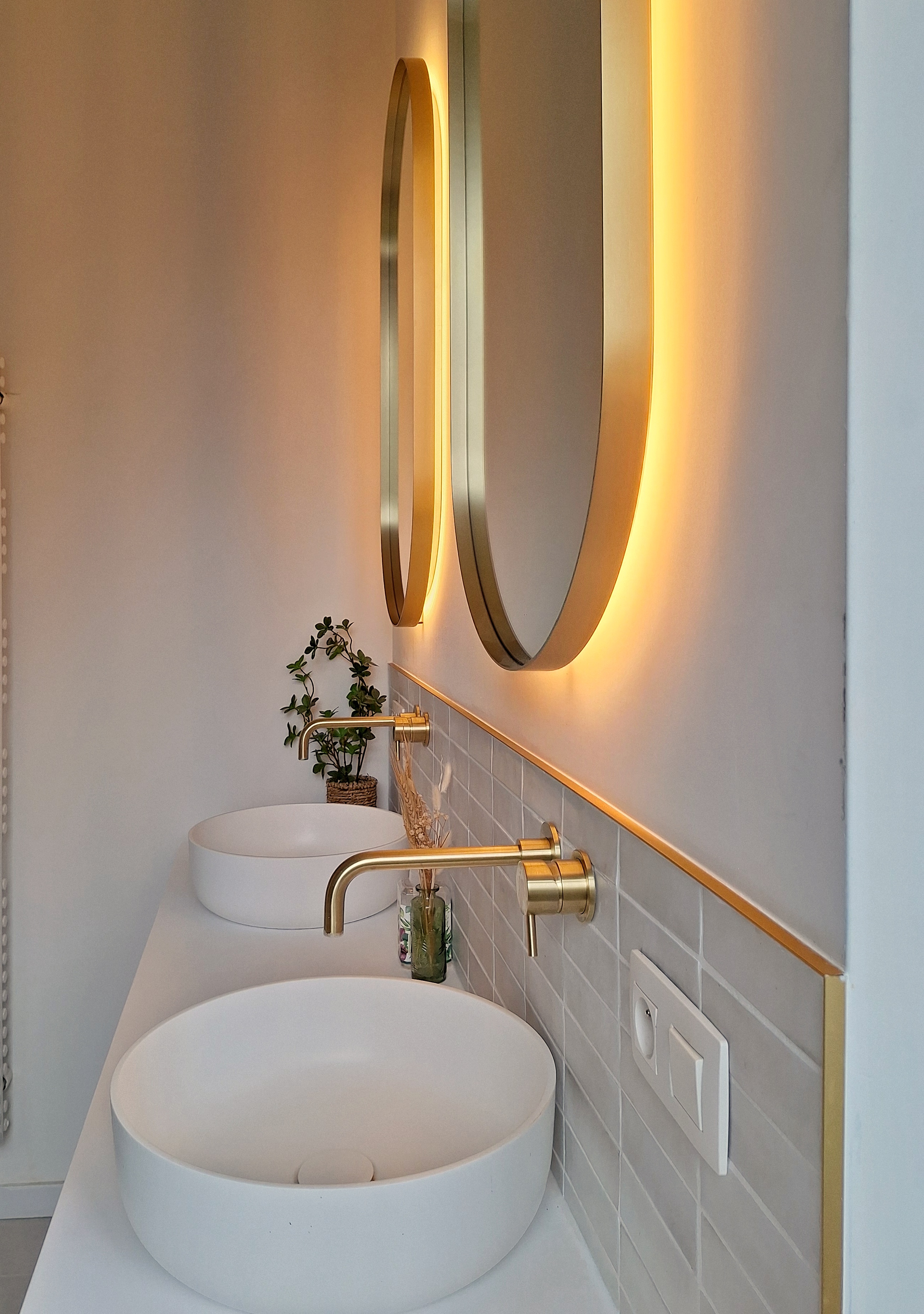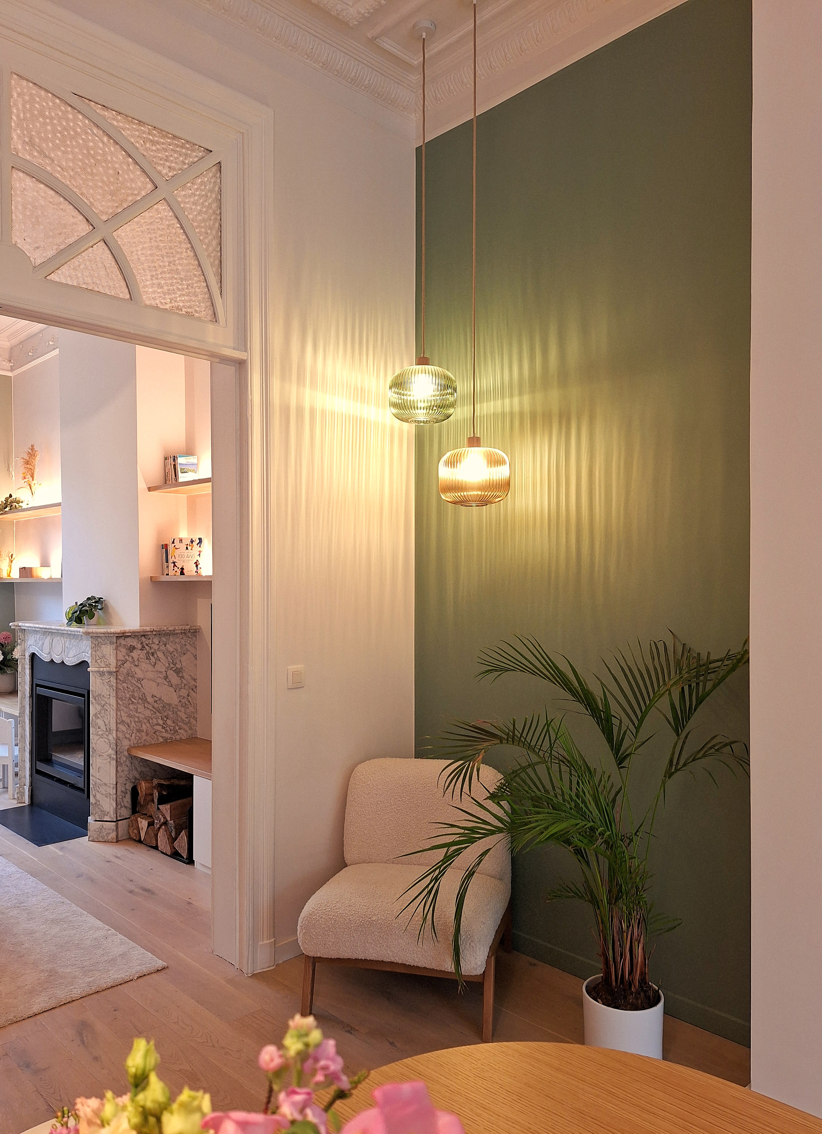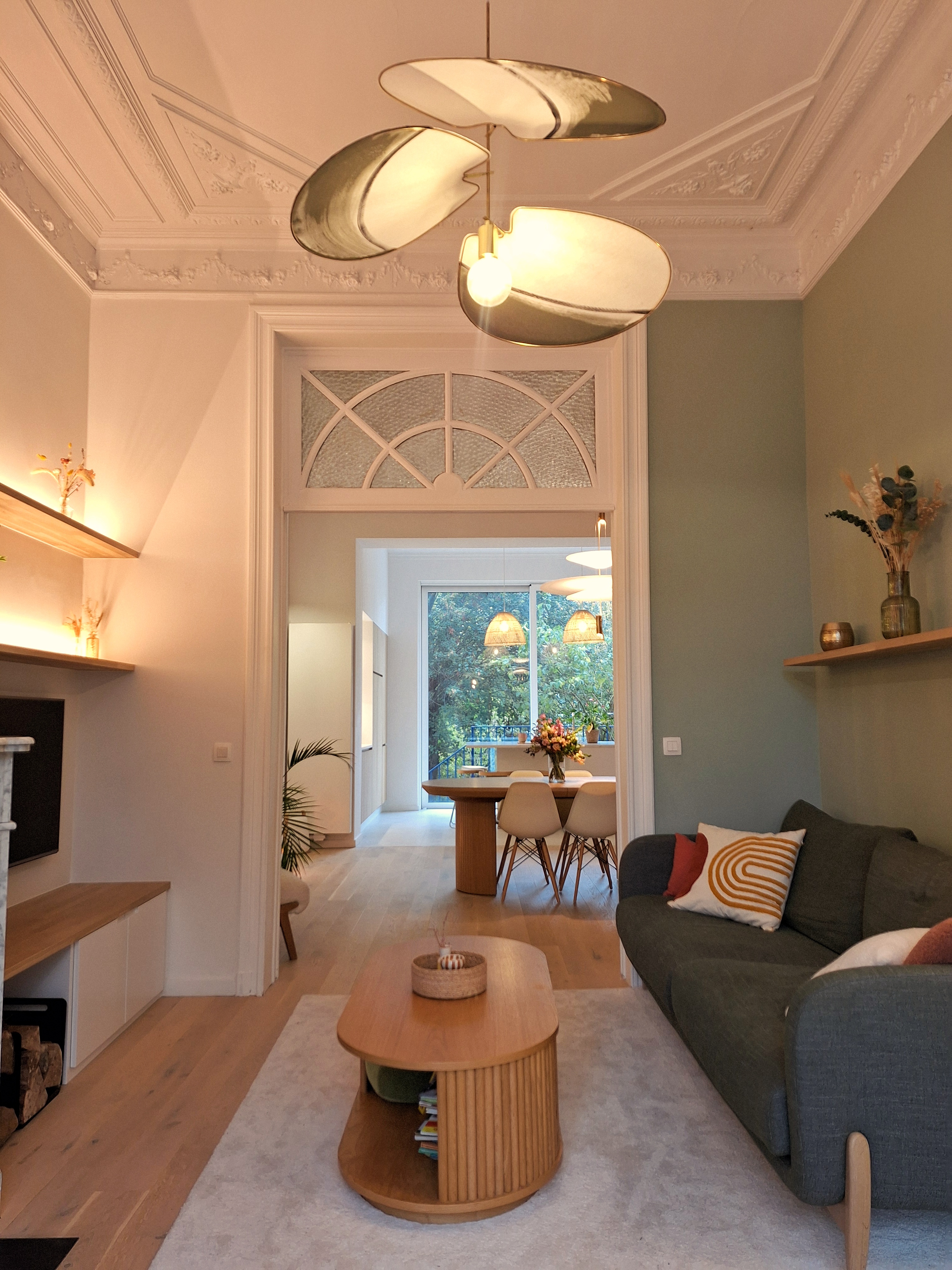 Les couleurs, matériaux et mobilier ont été soigneusement sélectionnés pour apporter style et harmonie à l’ensemble. Pour ce projet j’ai cherché à honorer le charme d’origine (moulures, volumes, lumière) tout en apportant la modernité et la douceur auxquelles mes clients sont sensibles.